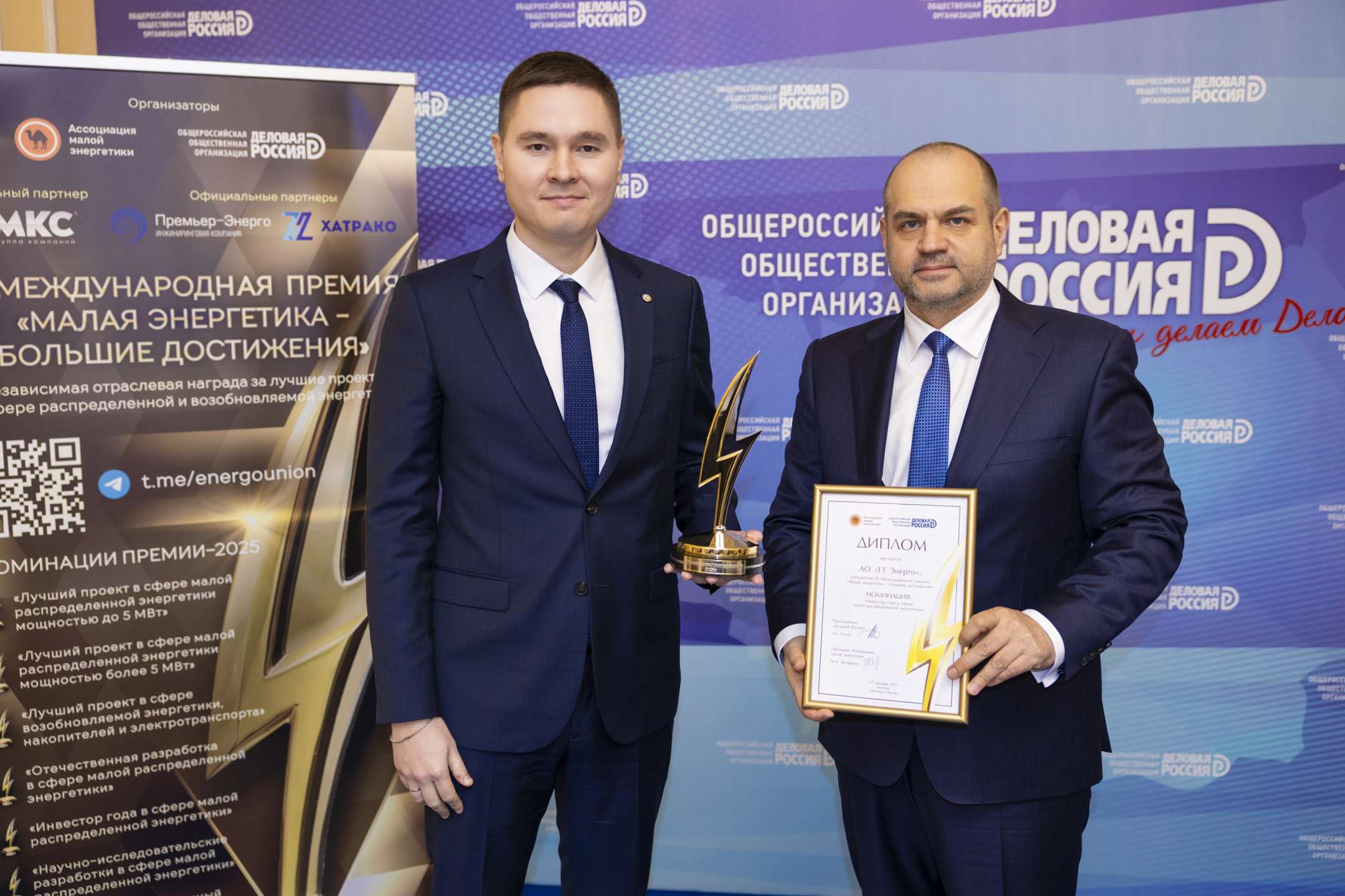 Завершился одиннадцатый сезон Международной премии «Малая энергетика — большие достижения». 17 декабря в Москве, в штаб-квартире «Деловой России» прошла церемония вручения «Золотых молний» – главной награды в сфере малой распределенной и возобновляемой энергетики. Оргкомитет конкурса выражает благодарность всем финалистам, членам Международного экспертного совета, партнерам проекта и поздравляет победителей и призеров Премии-2025!